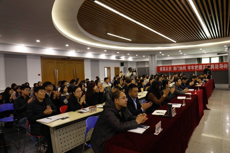 耿金波在讲话中从三个方面总结了2018年宣传工作:一、围绕中心,服务大局,不断强化宣传引领作用;二、加强新闻宣传报道,不断扩大学校的知名度和影响力;三、创新管理,建立健全宣传工作的长效机制。下一步,学校将进一步强化宣传工作的创新与管理,加大宣传投入,加强校内外媒体间的交流与合作,进一步强化舆情监控和舆论引导工作,加强宣传阵地建设,形成鲜明的宣传工作特色与优势,力争宣传工作再上新台阶。希望全校各部门进一步增强对宣传工作重要性的认识,锐意进取,不断创新,以加倍的努力和卓有成效的工作,为学校改革发展再立新功。