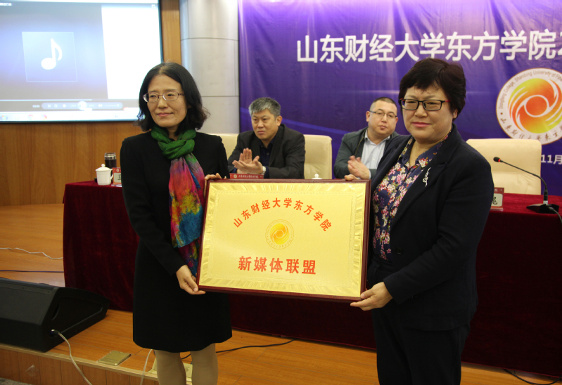 会上,宣读了《山东财经大学东方学院关于成立新媒体联盟的决定》和新媒体联盟成员单位及组织机构名单,新媒体联盟单位代表宣读了《新媒体联盟公约》。在现场二百多名师生代表的见证下,院长宫淑瑰为新成立的“山东财经大学东方学院新媒体联盟”揭牌。