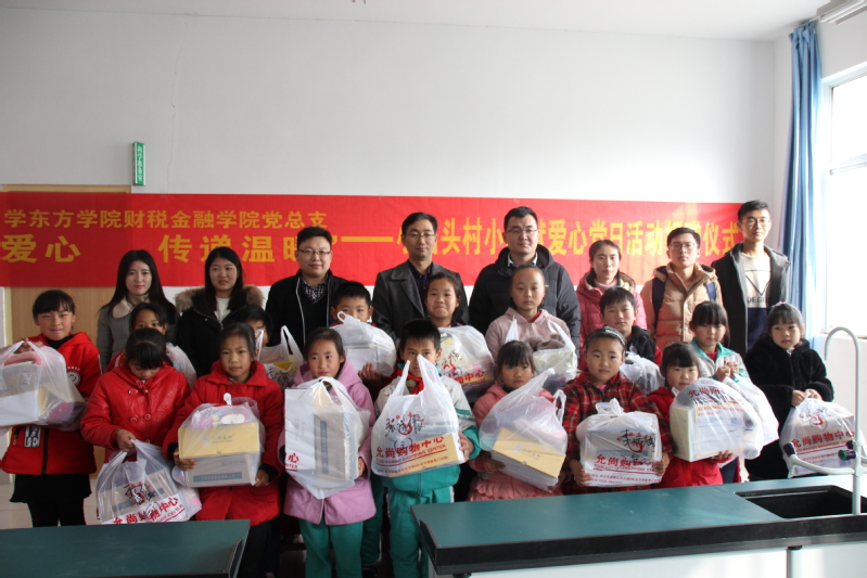 11月28日,财税金融学院党总支开展“爱心点亮小崮头村,让贫困山区的孩子和我们同享温暖!”党日活动。教工党支部、学生党支部踊跃捐款。活动得到了院长宫淑瑰、党委书记耿金波和全校师生的支持,总共计捐款8082元,用于为小崮头村学生和家庭的救助。