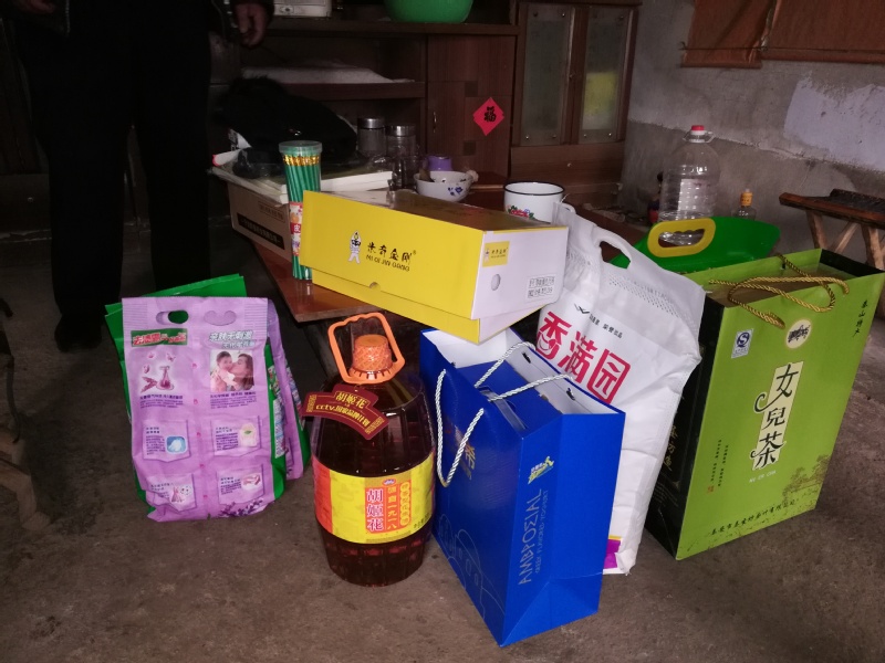 走过破败的土屋和嶙峋的荒山,在山脚下一处独门独院,住着此次捐助的第二户人家,就是野坊小学一年级学生李宝霞家。李宝霞的妈妈在生下她40多天后就离家出走,至今杳无音讯。父亲常年在外打工,也很少往家寄钱,李宝霞出生以来生活基本由他70多岁的爷爷奶奶照顾。从去年以来,我校财税学院许丽洁同学与她结成帮扶对子,每月邮寄500元,帮助李宝霞完成学业。此次走访,捐助团带来了面粉、牛奶,花生油、茶叶等生活用品,还有700元的捐款,愿老人保重身体,也希望他们能改善生活,让小宝霞能健康快乐成长。