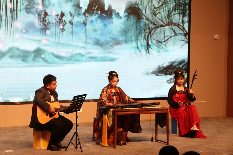 4月17日晚,图书馆学术报告厅内乐曲悠扬、歌声嘹亮,第十一届大学生学术科技节开幕式暨民族管弦乐团汇报演出在这里隆重举行。