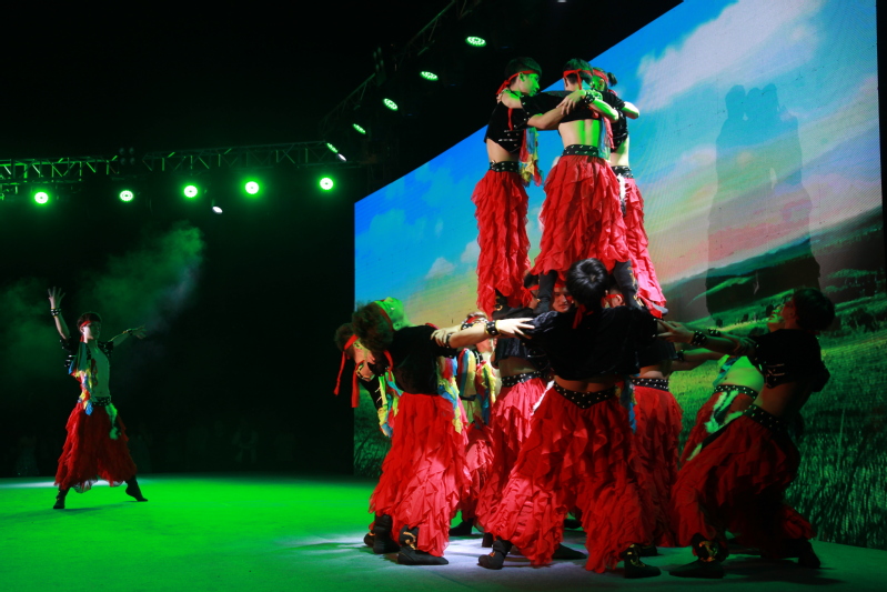 晚8点,大赛在激情四射的开场舞《bang bang》中拉开帷幕,飞扬的裙摆,动感的音乐,摇曳的身姿,飞扬的发丝,梦幻的星光,青春的活力在挥洒,耀眼的光芒在绽放。