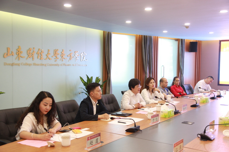 在播放了山东财经大学东方学院宣传片后,宫淑瑰介绍了学校的办学历史、办学规模、学科特色和实施“五个一工程”,在学分制教学管理、基础设施建设等方面取得的成就。她指出,近年来,我们立足建设区域内特色鲜明的应用型大学的办学定位,紧跟区域经济发展和新旧动能转换的时代要求,不断优化学科设置,提升内涵发展质量。实施“双百计划”,引进美国斯坦福双创课程体系,加强政校行企多方联动共同发展,不断提高应用型人才培养质量。目前,我们正在推动建立高新区校企合作联盟,让泰安高新区企业参与学校办学,为学生培养和就业提供多种选择。我们支持并期望优质企业参与学校办学,以此进一步缩短学生与社会、教学与实践的距离。