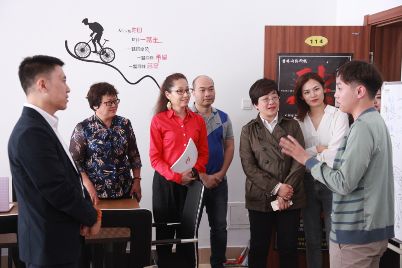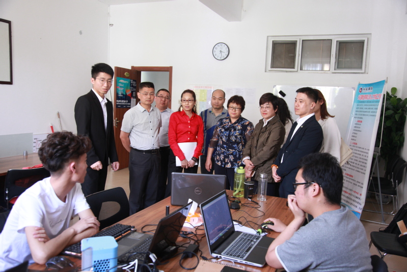 座谈会结束,来访客人参观了大学生创新创业基地,并到学校第四届互联网+大学生创新创业大赛现场作了观摩。