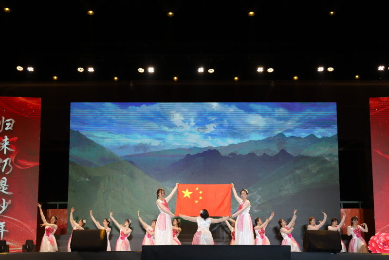 晚会在大合唱《千秋伟业 地久天长》结束。校领导与演职人员、校友和毕业生代表上台合影留念。