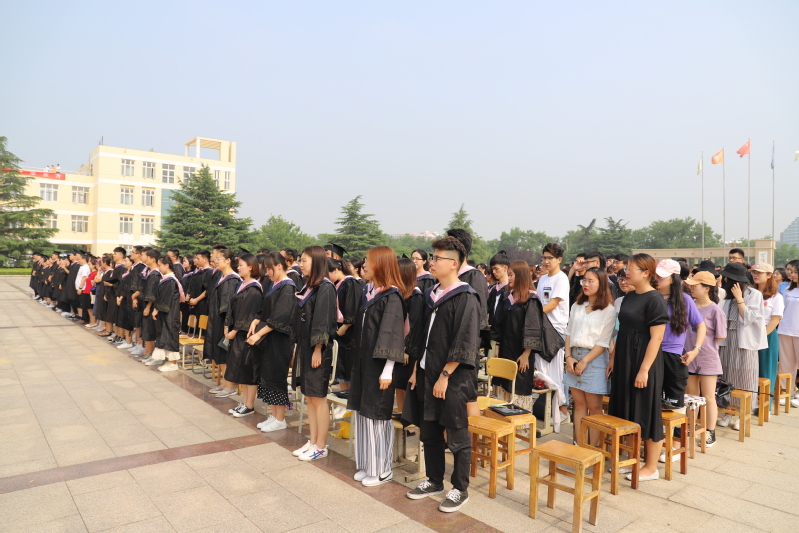 院长宫淑瑰、副院长王雪晨出席毕业典礼,党委书记耿金波主持典礼。各部门、各学院负责人在主席台就坐。2019届全体毕业生、教职工代表、学生家长代表、低年级学生代表约2000人参加毕业典礼。