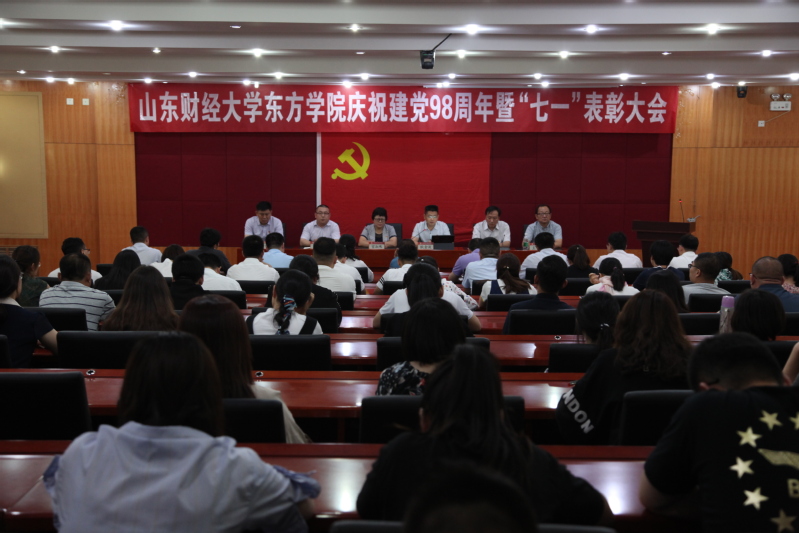 7月1日下午,山东财经大学东方学院国际报告厅气氛庄严热烈,学校庆祝建党98周年暨“七一”表彰大会在这里隆重举行。会议表彰了先进集体和先进个人,重温了入党誓词,对今后基层党组织建设提出新的要求。党委书记耿金波、院长宫淑瑰、副院长王雪晨,校党委成员出席会议,受表彰先进集体和先进个人、全体中层干部和党员代表参加会议。党委成员、组织人事处长江东主持会议。