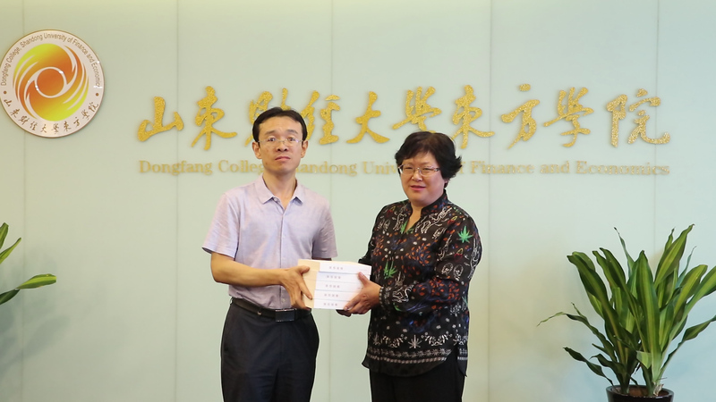 仪式上,华为泰安地区基地经理陈震向我校赠送了华为领军人物任正非的《采访实录》,宫淑瑰接受了赠书。