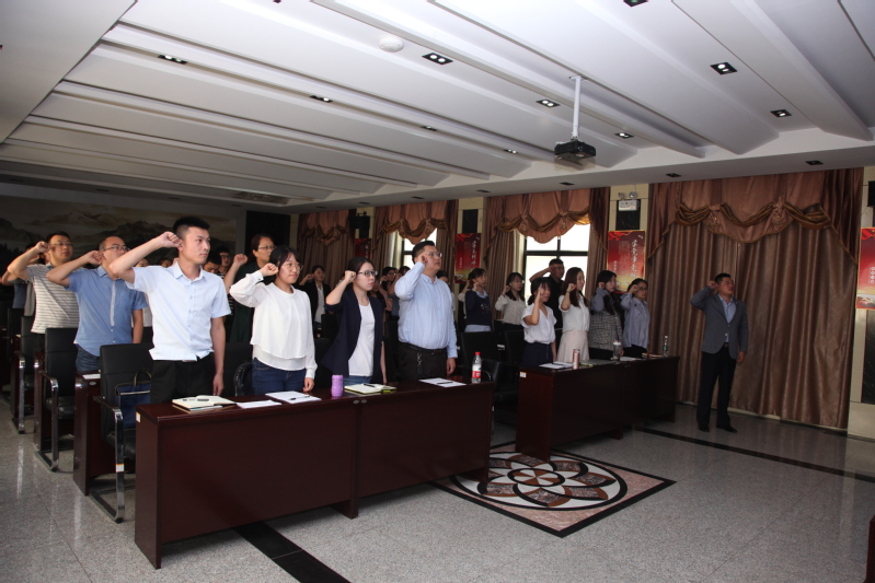 开班仪式上,全体新入职教职工宣誓:面对国旗我庄严宣誓: