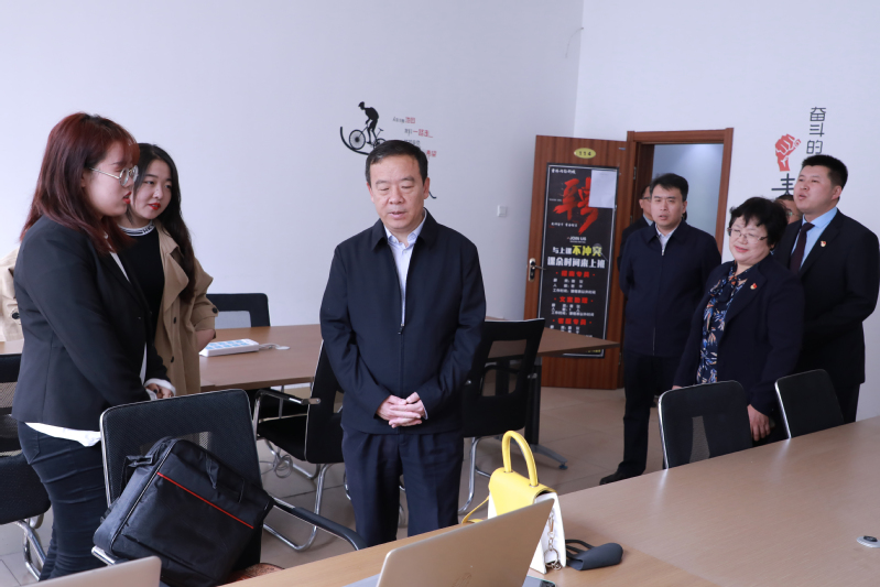 10月12日上午,山东财经大学党委书记王邵军在山东财经大学党委办公室、校长办公室主任隋国武的陪同下来东方学院调研。董事长陈磊、院长宫淑瑰、党委书记耿金波、副院长王雪晨陪同王邵军一行先后参观了图书馆、实验楼、创新创业孵化基地和学生餐厅,并到南校区工地了解了学校后期规划建设情况。