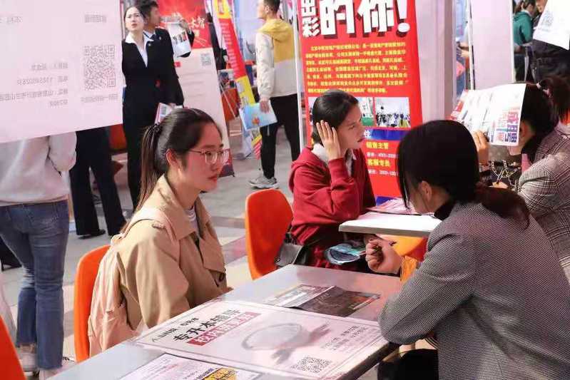 在本次双选会中,有的大二大三学生也来了解就业信息。有大四学生抱着满满的希望前来咨询,虽然有丰富的岗位选择,但能找到适合的工作并不容易。2018级市场营销专业升本1班的崔馨月认为,找工作首先应该明确自身定位。初入职场,薪资并不重要,重要的是有学习的机会提高自身价值。她想对在校学习的同学们说:“要努力学习,有能力的话考研深造也是不错的选择。把握住提高自己专业水平的机会,只有丰富充实自己,才能有更大把握去抓住机遇。”