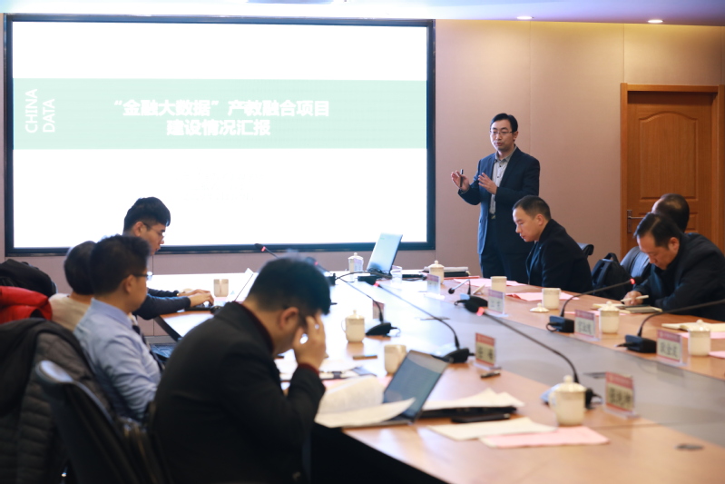 会上,“数据中国-百校工程”产教融合创新项目负责人、财税金融学院副院长郭宁对项目进展情况、主要问题及建议、未来的建设思路等作了汇报。