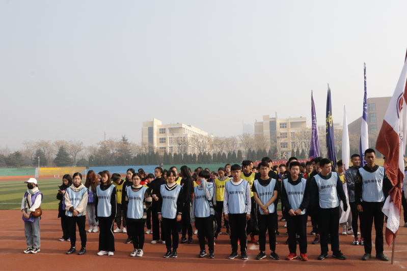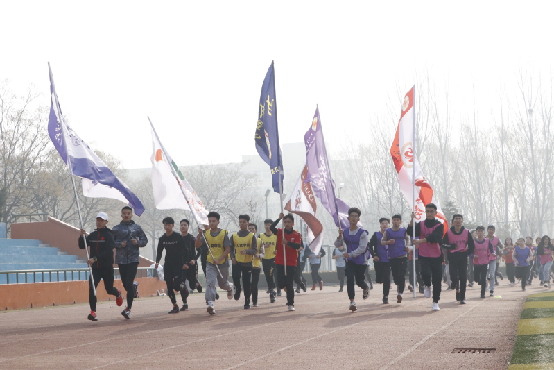 各个二级学院的参赛者已准备就绪,他们扛着随风飘扬的院旗,排着整齐的队伍,整装待发,意气昂扬。“各就各位!”发号枪响,随着耿书记一声令下,比赛开始!参赛队伍开启了激烈的角逐。