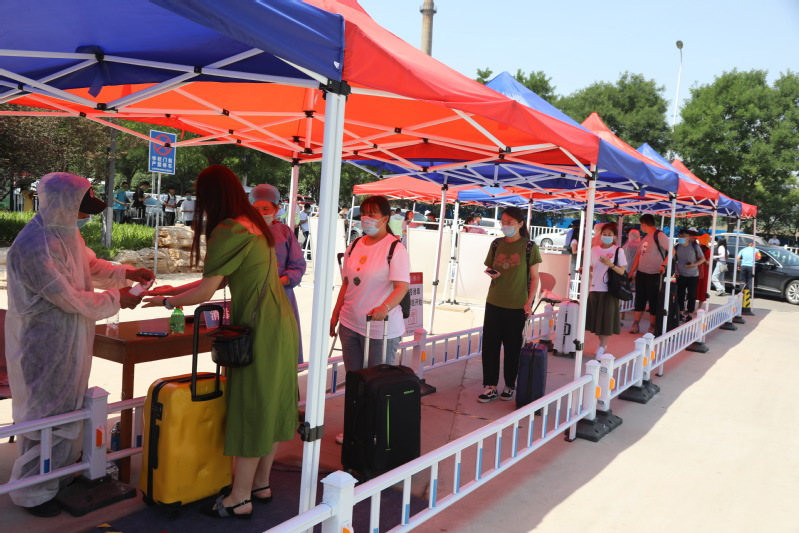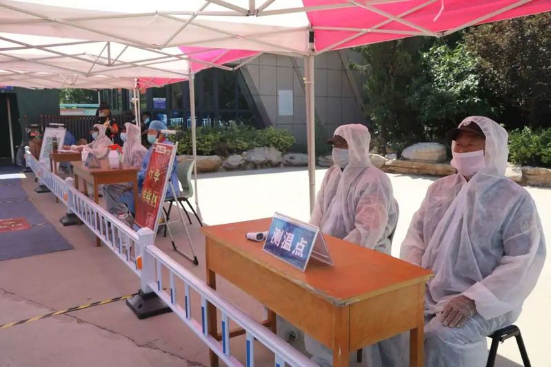 为迎接开学,学校反复进行了开学条件应急演练,校领导多次到校门口和学生宿舍,检查学生入校情况。
