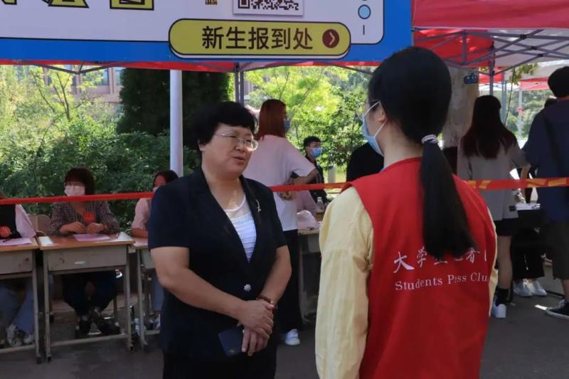 上午9点,校领导陈磊、宫淑瑰、耿金波、王雪晨来到迎新现场检查指导新生入校工作,询问工作中的问题,对各部门的辛勤工作表示感谢。