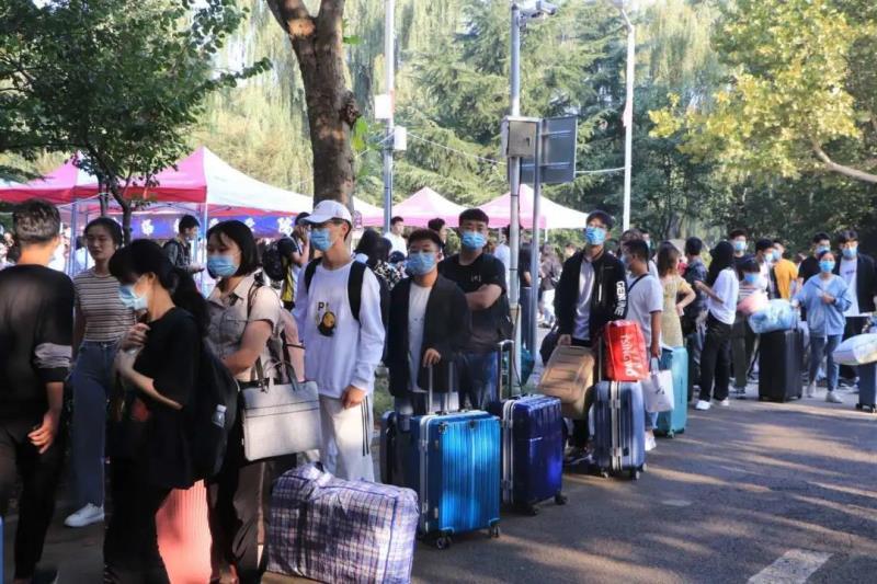9月19日和20日,山东财经大学东方学院迎来了2020级3084位新生。早上7点,金色的阳光洒满校园,学校西大门已经聚集了前来报到的学生和家长们。新生接过家长手中的行李,在志愿者引导下,经过体温检测、身份验证等程序依次进入校园。