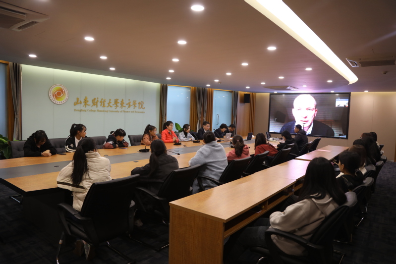 10月28日下午,坤元楼第一会议室,为进一步扩大国际贸易专业学生的国际化视野、提升学生对中英“3+1”合作项目的专业认知,山东财经大学东方学院与英国安格利亚鲁斯金大学(以下简称安鲁大学)连线举行了国际商务专业合作项目见面会。山东财经大学东方学院院长宫淑瑰,英国安鲁大学副校长、商学院院长格瑞教授,英国安鲁大学国际事务部主任西蒙博士,英国安鲁大学中英合作项目负责人林新法博士出席见面会。会议由国际商学院英语教研室主任刘浩博士主持,办公室主任、组织人事处处长江东,国际商务专业部分学生代表参加活动。