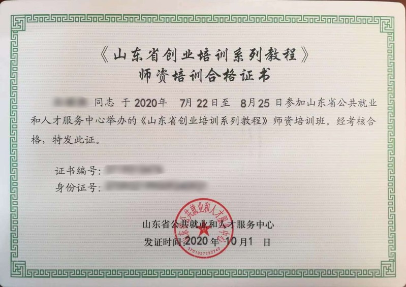 近日,我校选派的16名教师圆满完成山东省人社厅公共就业和人才服务中心举办的《山东省创业培训系列教程》师资培训班并取得师资培训合格证书。