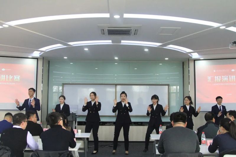 在公司化运营模式下,本学期大学生就业岗前实训班全体成员共同模拟注册成立了财富管理公司——山东金泰融安有限责任公司。会议开始,由公司成员为大家献上热情的舞蹈表演,活跃了现场的气氛,拉开了汇报演讲比赛的序幕。