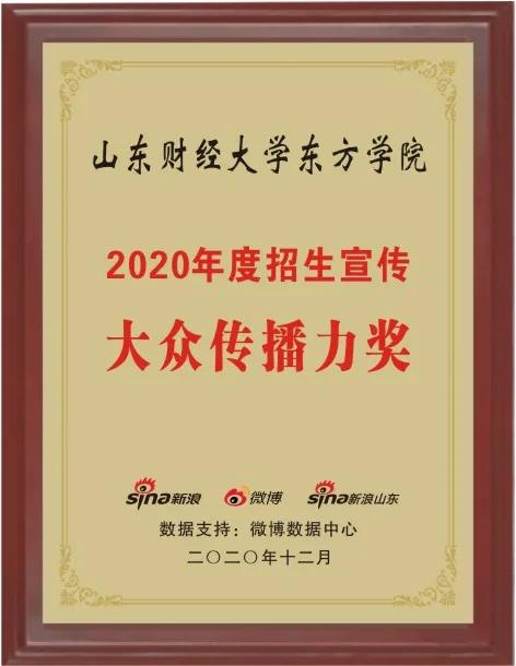 近日,2020年度山东教育盛典荣耀榜单盛大发布,山东财经大学东方学院喜获“2020年度山东最具行业影响力本科院校”“2020年度招生宣传大众传播力奖”两项殊荣。