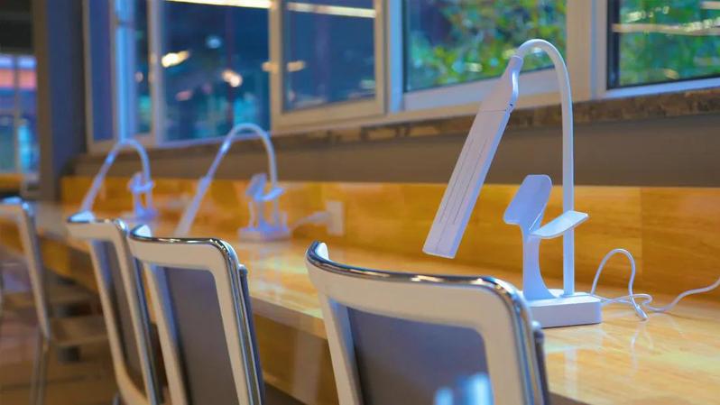秉持着环保节约的理念,图书馆二期进行了多处旧物改造,比如将食堂的灶台改造成读书学习的桌子,将废旧的水管改造成机器人台灯,将闲置的音响制成了花架,旧物件在新馆里折射出不一样的韵味。对老食堂的改造与利用,不仅为图书馆增加约9000平方米的面积和1000余个座位,而且为老食堂这座老建筑赋予新的生命、注入新的活力。