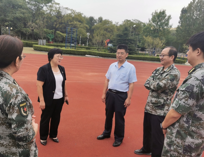 9月23日上午,院长宫淑瑰、党委书记耿金波在学生工作处负责人陪同下到体育场慰问参加军训的教官和师生。