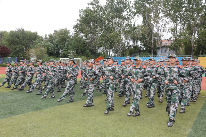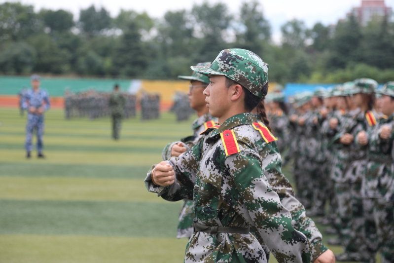 九月秋风紧时,沙场军训忙。体育场上,参加军训的新生在教官的指挥下,聚集会神、全力以赴参加军训。