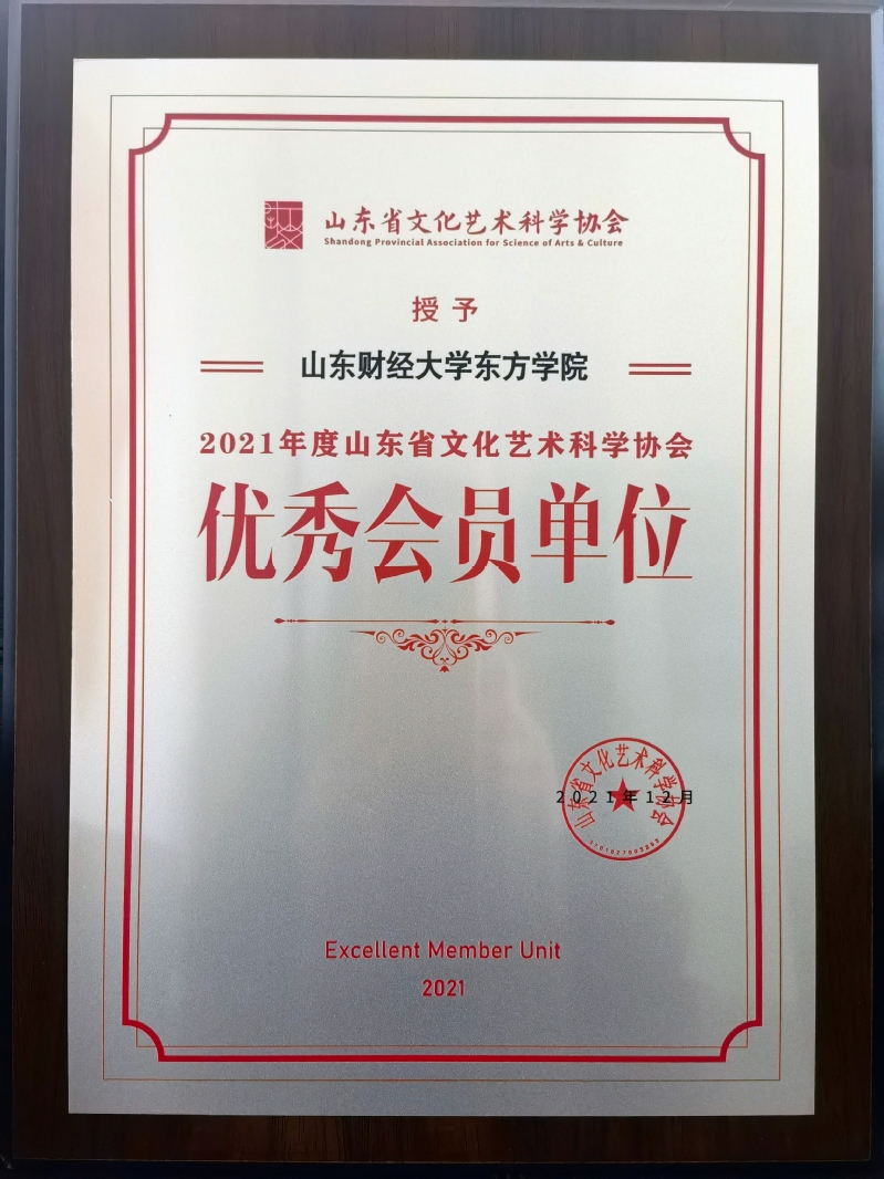 近日,山东省文化艺术科学协会评选出优秀会员单位名单。山东财经大学东方学院被评为2021年度山东省文化艺术科学优秀会员单位。