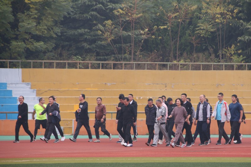 体育场歌声嘹亮。也许是感受到身体那久违的运动记忆,也许是被现场的气氛感染,老师们都健步如飞,努力展现最好的运动状态。周围同学们看到这情景,都纷纷鼓掌呐喊为老师们加油鼓气。蓝色的天空、红色的跑道、矫健的身姿,绘成了运动场上最美的风景。老师们走着、跑着,笑着、交谈着,在广袤的天空下,在宽阔的运动场上留下了美好的记忆。