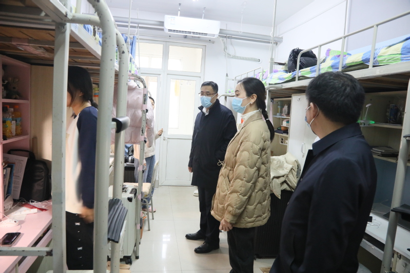 在学生宿舍,校领导了解了暖气、热水供应状况,询问了学生网课学习情况,对消防设施、室内用电安全作了强调。鼓励同学们利用好网络教学资源,严格自律,加强教学互动,保证学习质量;要求有关部门要落实楼栋、楼层责任制,及时解决学生生活学习中的问题,强化服务、做好后勤保障,并严格隐患排查,堵塞疫情防控和安全管理的漏洞。