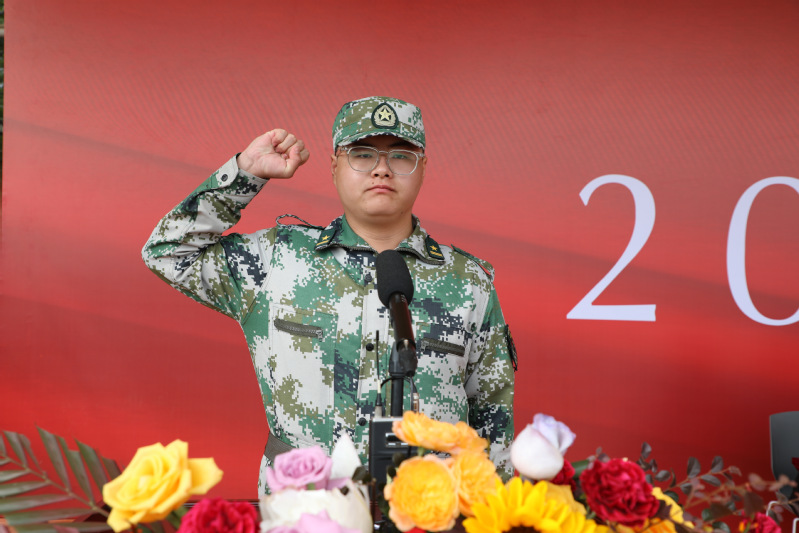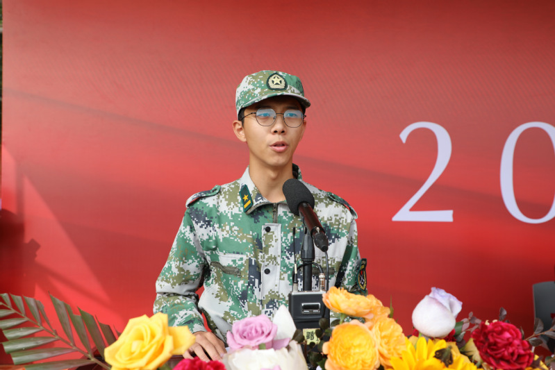 老生代表、数据科学学院曹艺馨发言,她从“关于学习”“关于成长”“关于生活”三个方面向学弟学妹们提出了宝贵的建议。愿同学们以军训中磨练出的意志为舟,以好奇与梦想为帆,在东方学院书写下无愧于青春、无愧于自己的华丽篇章!