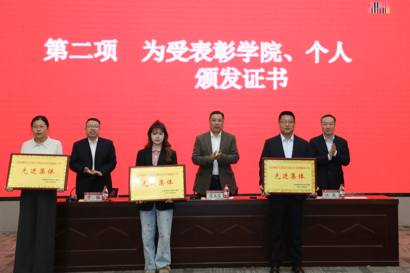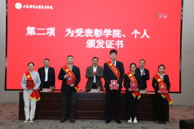 会上,于栋宣读了《关于表彰2025届毕业生就业工作先进集体和先进个人的决定》,学校领导为获奖集体和个人代表颁奖。就业工作先进单位代表国际商学院副院长吴国艳、财税金融学院副院长王小艺,就业工作先进个人代表国际商学院学工办主任连国伟、财税金融学院辅导员葛瑶先后作交流发言。
