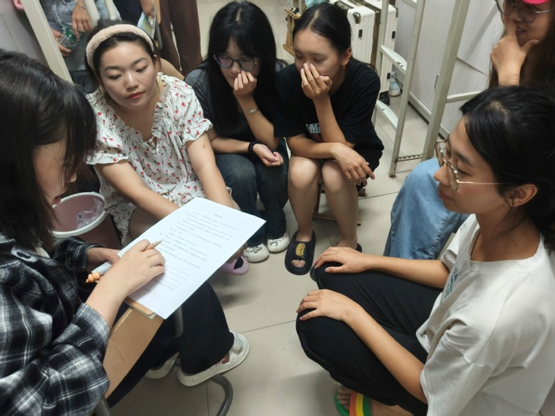 本次活动开始于每晚8:30,过程持续约1小时,由心理部成员、导生和导助共同主持。活动包含“舍友我想对你说”“宿舍非正式会谈”以及制定宿舍公约等环节。活动亮点众多,其中“舍友我想对你说”环节别出心裁,由心理部成员给宿舍每位同学都发放一张小纸条,宿舍成员在小纸条上匿名写下自己对室友想说的话。通过这一环节,既活跃了宿舍气氛,也为同学们提供了一个表达内心感受的平台。此外,心理部成员还准备了丰富的宿舍案例让同学们进行分析。同学们围坐一起探讨宿舍和谐之道,进一步加深彼此了解,拉近心与心的距离。