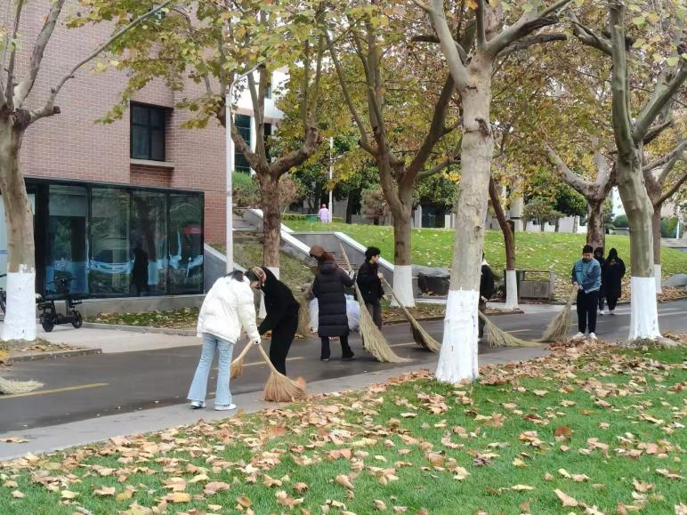 当同学们通过镜头与巧手礼赞秋色之时,一场“弘扬劳动美,金秋扫落叶”志愿活动也同步展开。百余名志愿者经过有序组织,手持扫帚,将散落在校园各处的枯枝落叶清扫归拢,再由环卫工人统一清运。此次活动不仅切实维护了校园环境,减轻了环卫工作压力,更让同学们在亲身劳动中体会到“一分耕耘,一分收获”的价值,弘扬了劳动奉献的精神。