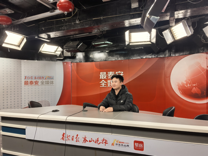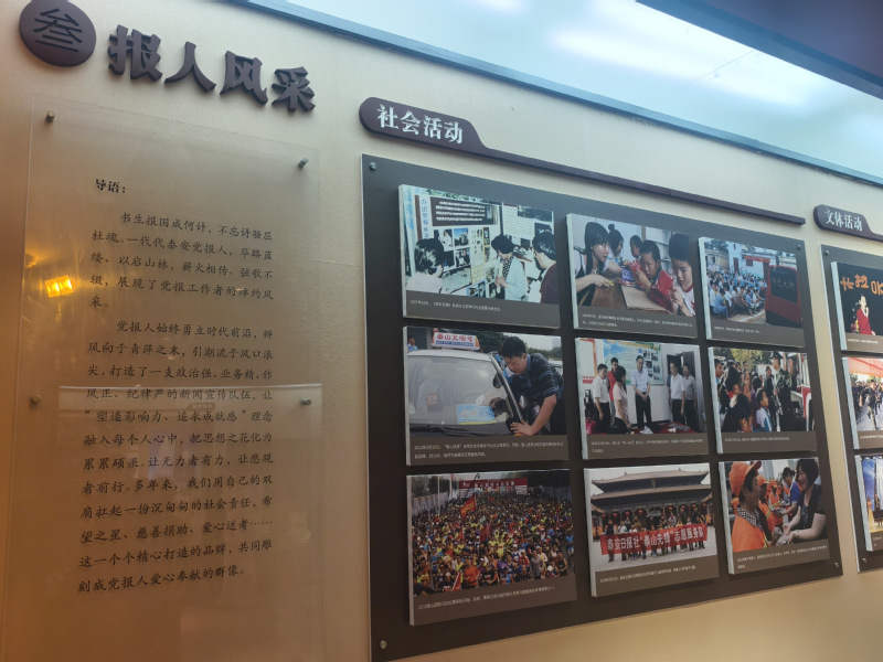 活动伊始,在报社工作人员的热情引导下,师生们首先走进泰安日报社报史馆。馆内每件展品都镌刻着岁月的痕迹:泛黄发脆的旧报纸版面定格了不同时代的新闻瞬间,翔实的文字史料系统梳理了报社的发展脉络,珍贵的历史影像生动还原了一代代新闻人奔波采访的身影。这些实物与资料相互印证,全方位呈现了《泰安日报》《泰山晚报》从创刊至今的风雨历程,也映照出泰安新闻事业与城市发展同频共振的变迁轨迹。同学们驻足凝视、认真聆听讲解,不时用笔记录关键信息,对报社从单一平面媒体向“报、网、端、微”全媒体矩阵转型的艰辛与辉煌有了更直观深刻的认知,也对新闻事业的使命与担当有了更真切的体悟。
