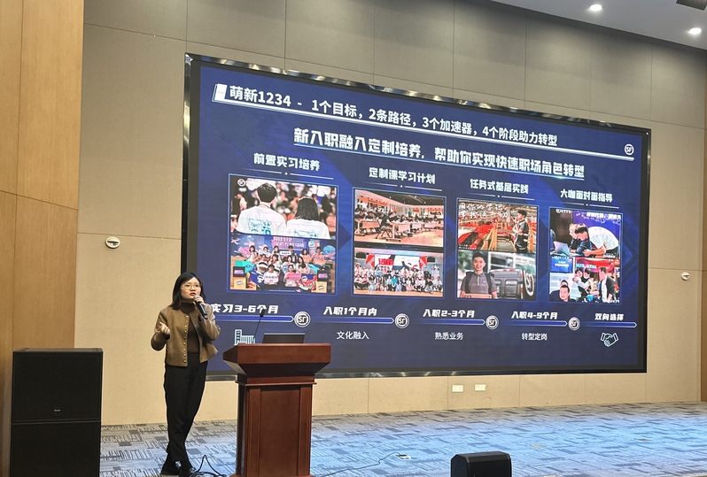 京东物流人力资源部宋洪涛经理向同学们介绍了京东的发展历程、企业文化以及京东自建物流的优势,还分享了自己在京东物流的工作经验,她通过对京东物流“三通道发展”及“七上八下”晋升模式的讲解,让同学们对京东的实习和就业模式有了进一步的了解。顺丰集团魏浩经理带领大家进行了“探秘顺丰”,介绍了顺丰30年的发展历程,让同学们感受到顺丰企业的活力,接着她向同学们展示顺丰为实习生提出的“萌新1234”,以帮助同学们快速实现职场角色的转型。