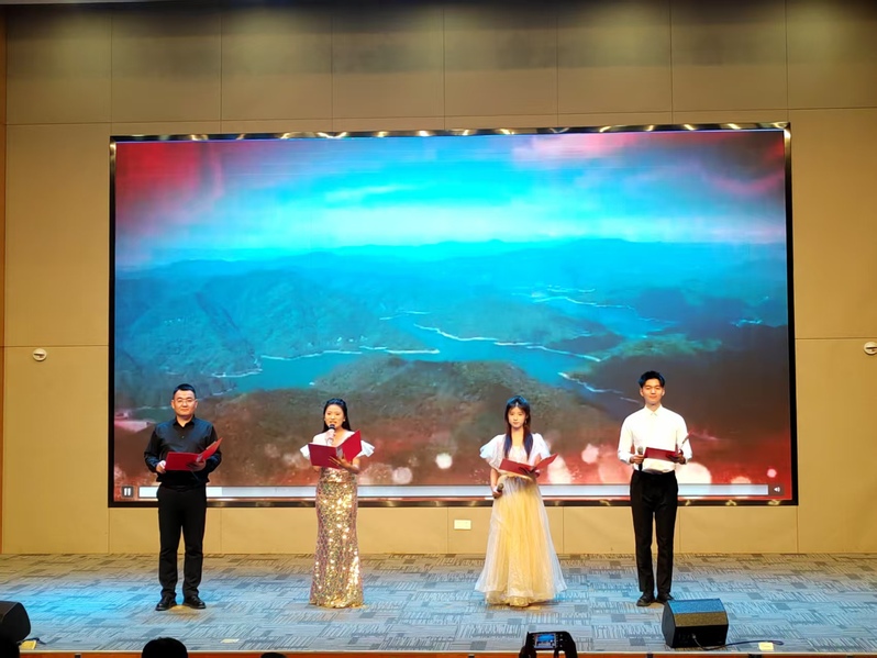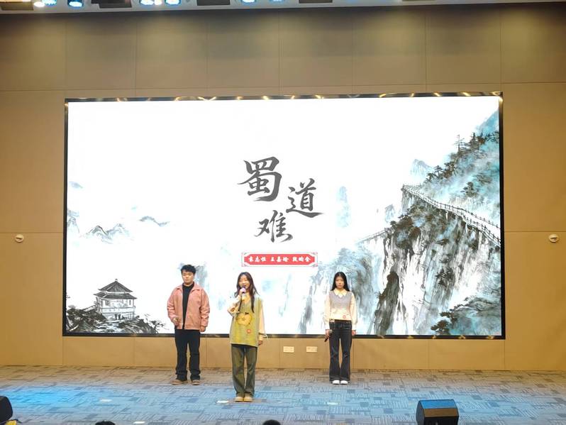 《月光下的中国》则以细腻饱满的情感,描绘出大河奔流、长城巍峨的壮美景象,字里行间洋溢着对祖国山河的挚爱与对盛世昌荣的自豪。舞台上,每一位选手都全情投入、慷慨抒怀,他们用声音寄托对未来的憧憬,一次次震撼观众的心灵。计分环节,数据科学学院刘宾老师与曹艺馨、宋子钰、刘恩赐三位同学共同带来朗诵《祖国颂》,深情磅礴的演绎感染了现场每一个人。