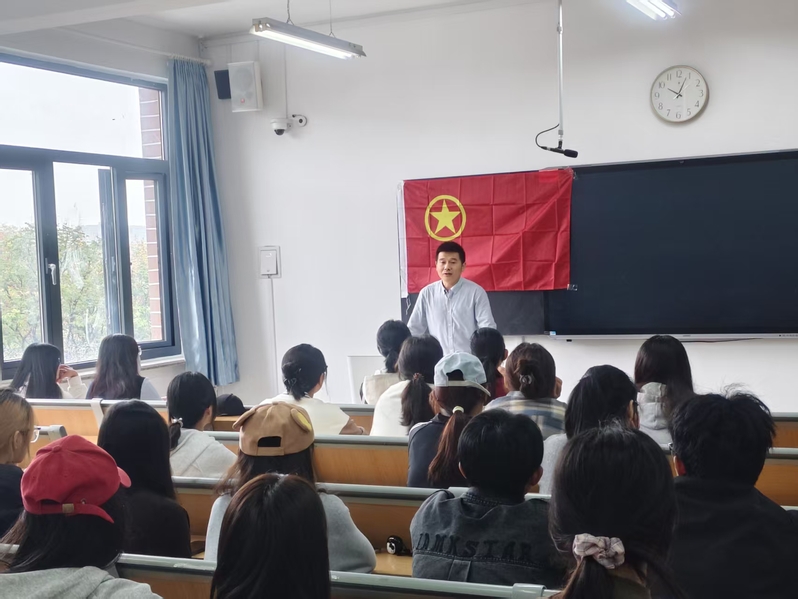 9月23日上午,公共教育学院团总支书记梁维江老师在2310教室为2025级全体新生团员讲题为“弘扬伟大抗战精神 做光荣自豪中国人”的主题团课。