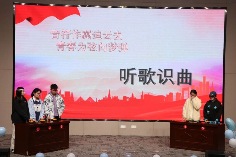 在掌声、欢呼声中,歌唱比赛正式拉开帷幕。比赛包括“听歌识曲”“歌词填空”和“经典演唱”三个环节。活动吸引了众多学生参与,现场气氛热烈。