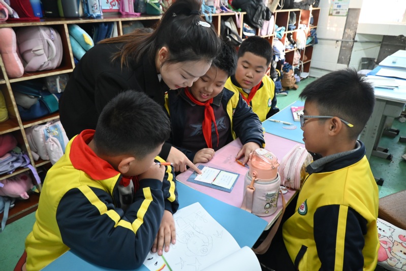 为让抽象的精神内核落地生根,学生党员进一步引导小朋友们联想日常学习生活:编顺口溜记单词是“智”,坚持每天打卡学习不偷懒是“勇”,主动向老师同学请教难题也是“勇”。现场随即响起朗朗上口的年月日顺口溜、朝代歌接力,孩子们在韵律与互动中,真切体会到红色精神中“智勇”品格的当代价值,让革命先辈的精神智慧融入成长日常。