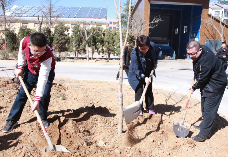 党委书记耿金波说:十年树木,百年树人。今天我们植树,希望它早日开花结果。我们要像栽树一样,优化育人环境,提升教学档次,精细化管理,培养德智体美劳全面发展的合格人才!
