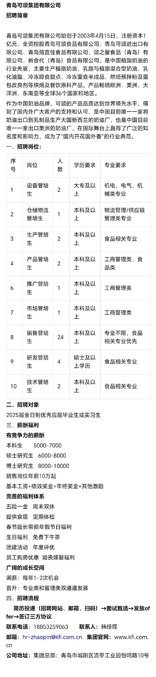 招聘 青岛可颂食品有限公司