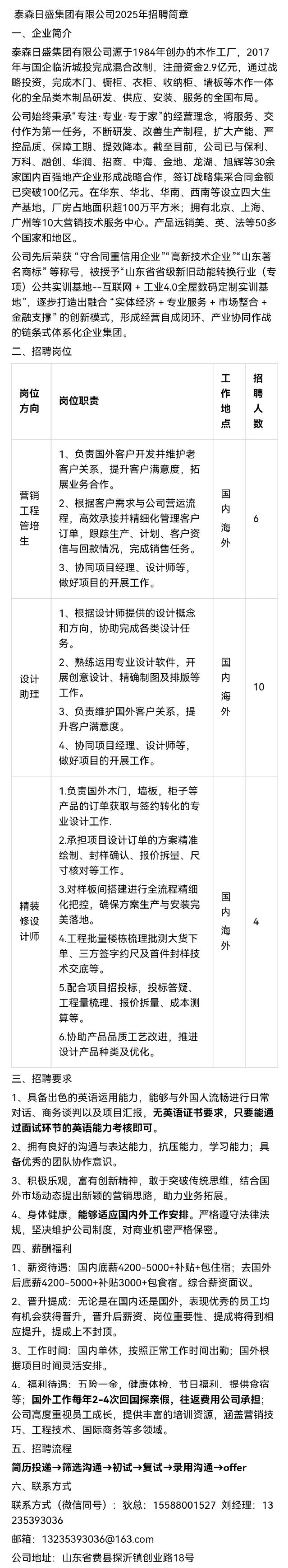 招聘 泰森日盛集团有限公司