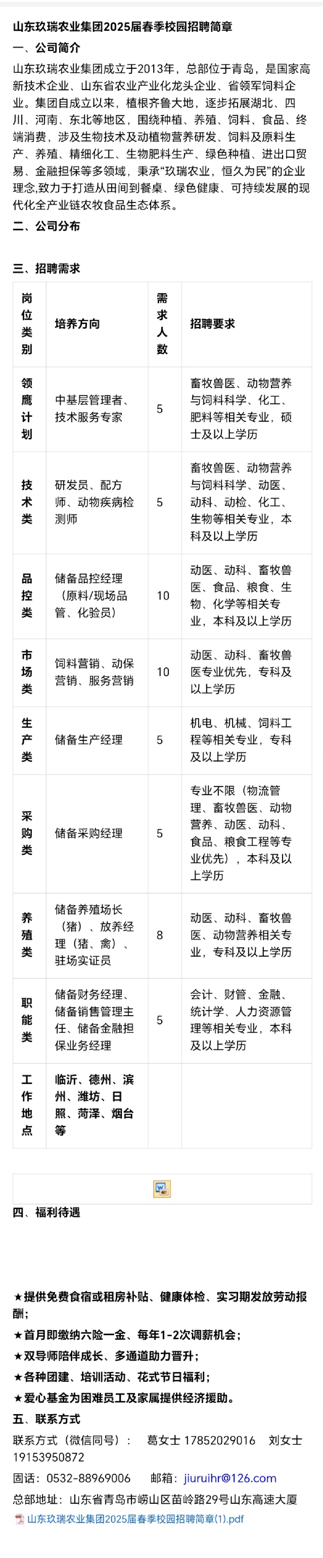 招聘 山东玖瑞农业集团2025届春季校园招聘简章