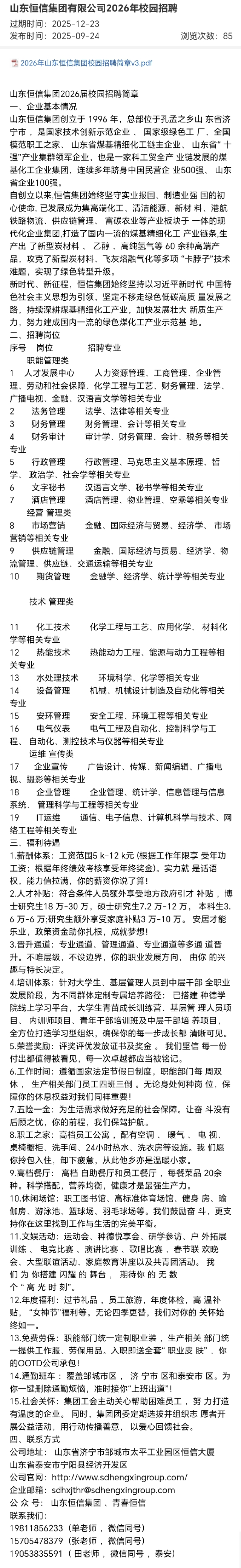 招聘 山东恒信集团有限公司2026年校园招聘
