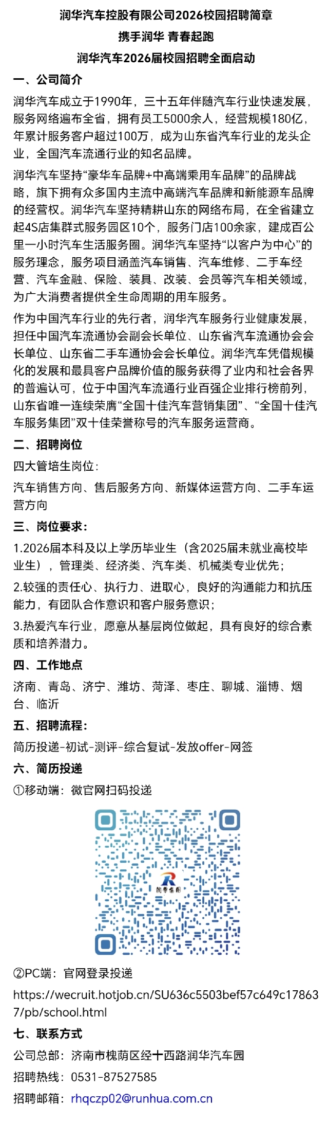招聘 润华汽车控股有限公司2026校园招聘简章