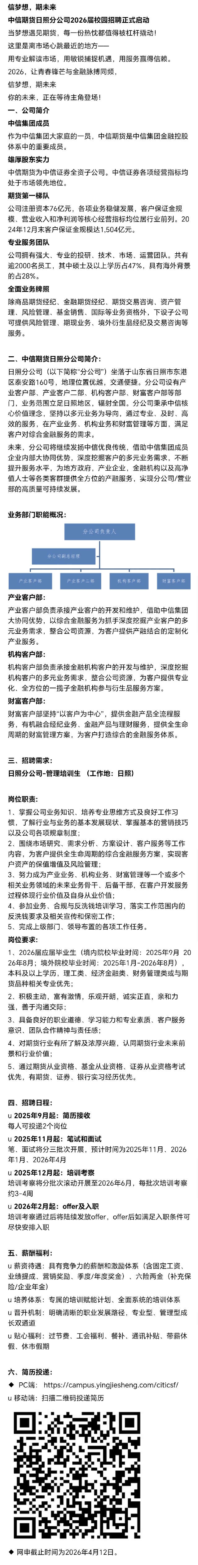 招聘 中信期货日照分公司2026届校园招聘正式启动