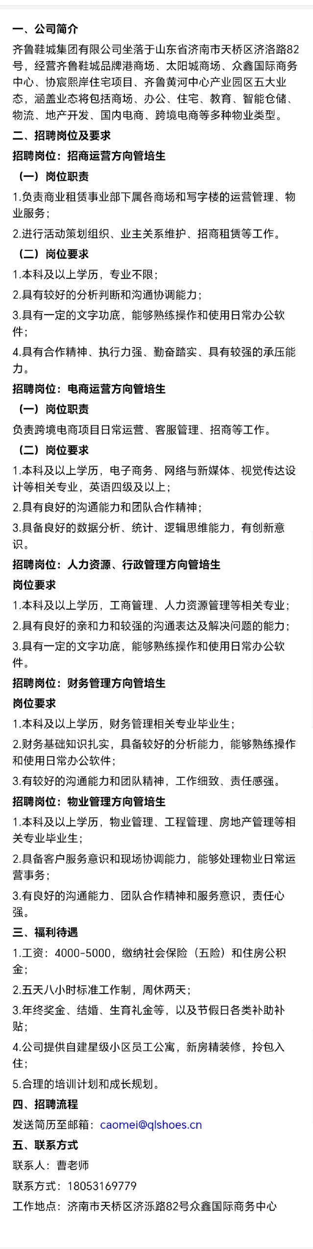 招聘 齐鲁鞋城集团有限公司招聘简章