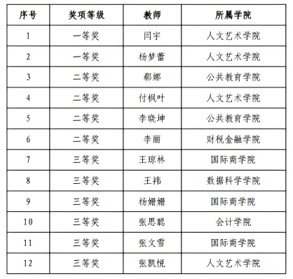 经评议,最终评选出获奖教师12名。其中,人文艺术学院闫宇、杨梦蕾两位教师荣获一等奖,郗娜等4位教师获二等奖、王琼林等6位教师获三等奖。学校将择优推荐获奖教师参加山东省民办高校青年教师教学大赛。