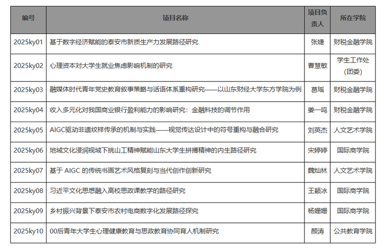 根据《山东财经大学东方学院关于申报2025年度校级科研项目的通知》,经学院初审、专家评审,学校批准10个项目立项,现将有关事宜通知如下:
